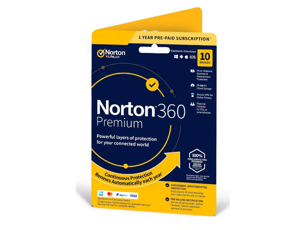 Norton 360 Premium (10 Device – 1 Year) Multi Device Includes 75GB Ηλεκτρονική Άδεια
